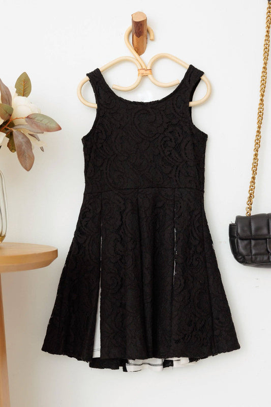 Girls Lace Black & White Hem A-line Silhouette Dress