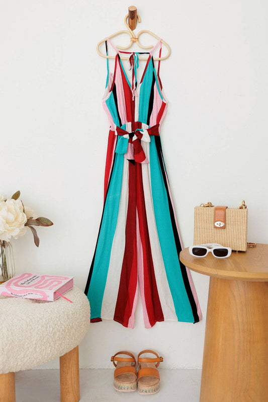 Girls Stripe Back Tie Pom Pom Sleeveless Jumpsuit