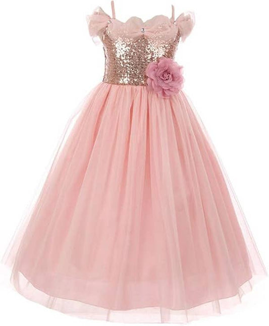 Girls Sequin Glitter Tulle Flower Girl Dres