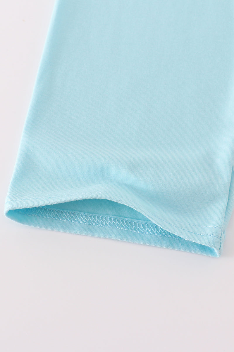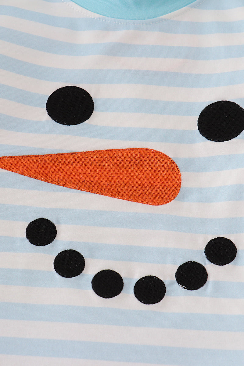 Blue snowman embroidery stripe pants set