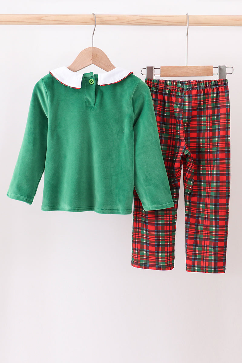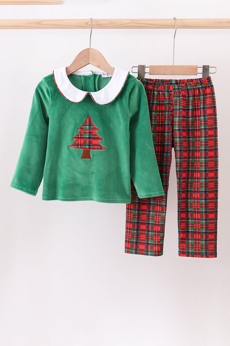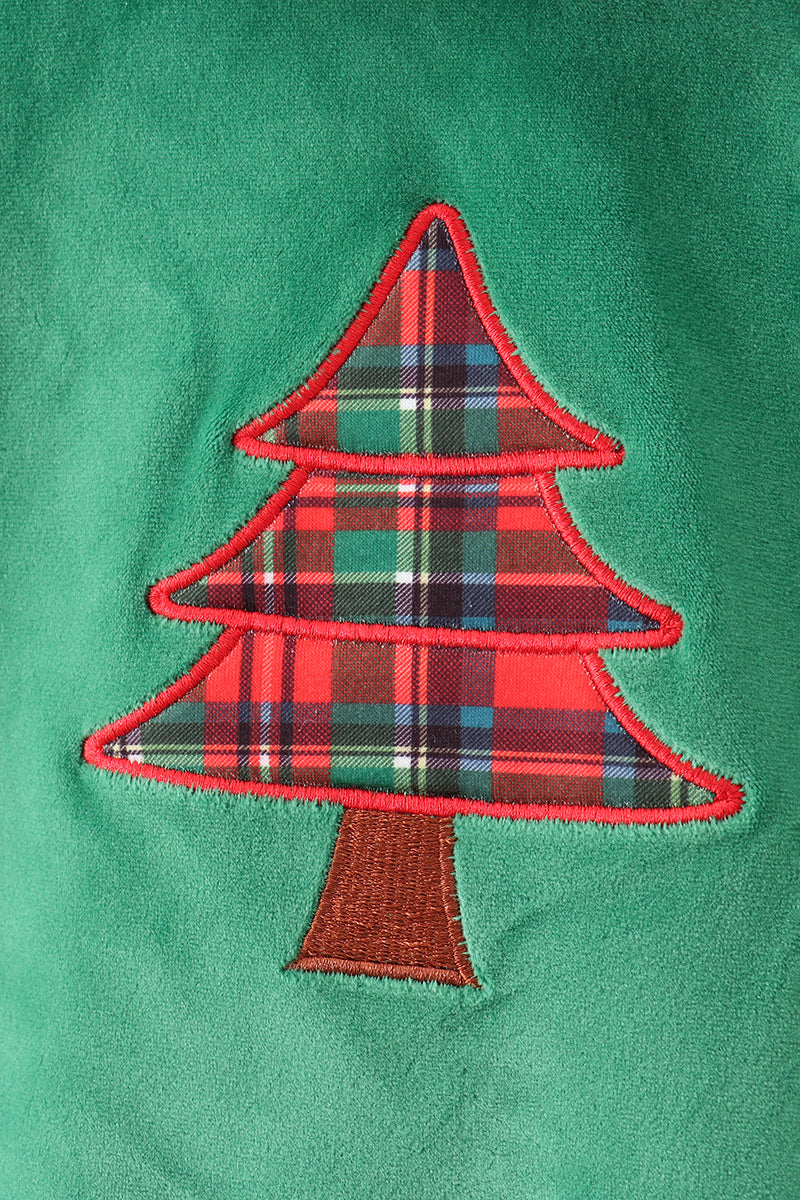 Green christmas tree applique pants set