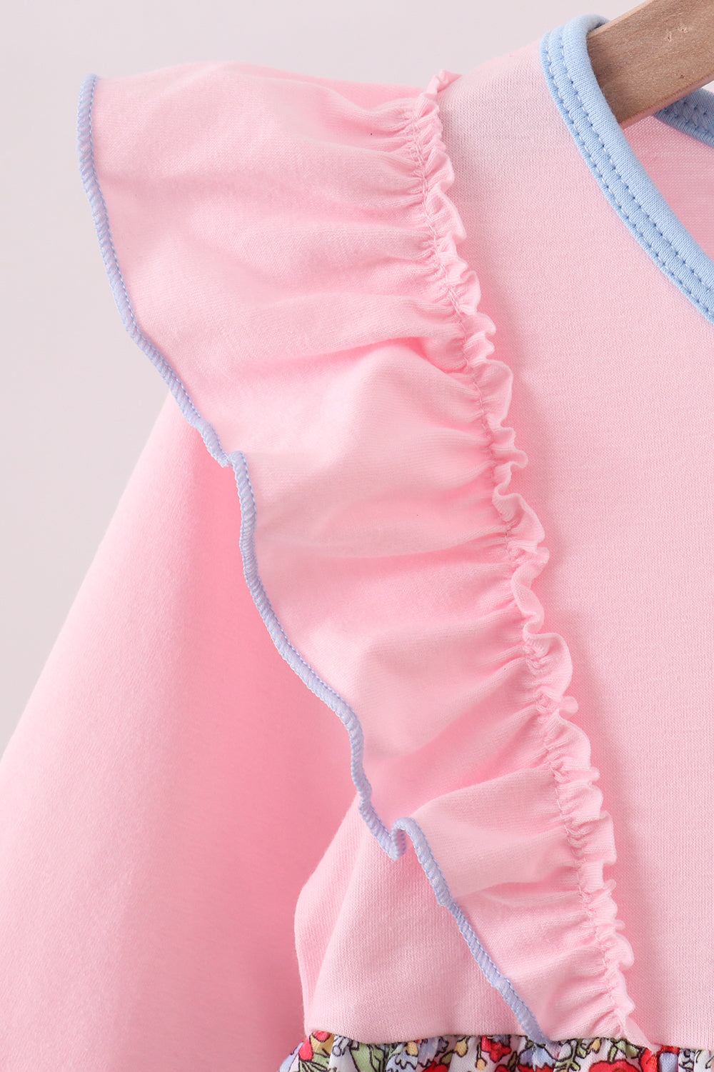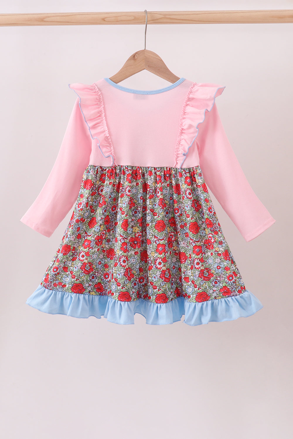 Celebrate the season in style with this playful pink dress featuring charming Christmas tree appliques and delicate ruffles. Perfect for holiday parties, its festive design adds a touch of whimsy and fun to your little one's wardrobe. Comfortable and eye-catching, this dress makes every holiday moment more magical.