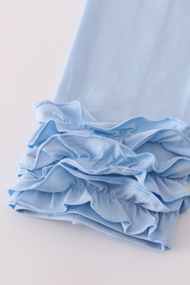 Pink princess castle embroidery gingham ruffle pants set
