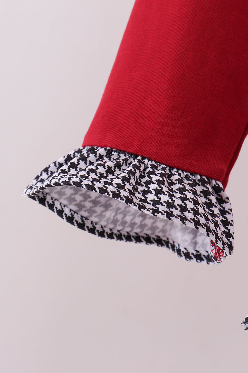 Elevate your game day style with this premium maroon top featuring bold Alabama embroidery that shows your team spirit loud and proud. The charming ruffle detailing adds a flirty, feminine touch that transforms a classic fan favorite into something extra special. Crafted with quality construction, this piece is perfect for tailgates, casual outings, or whenever you want to rep your Crimson Tide pride with personality. Comfortable enough for all-day wear, stylish enough to turn heads—because supporting your team should always look this good!