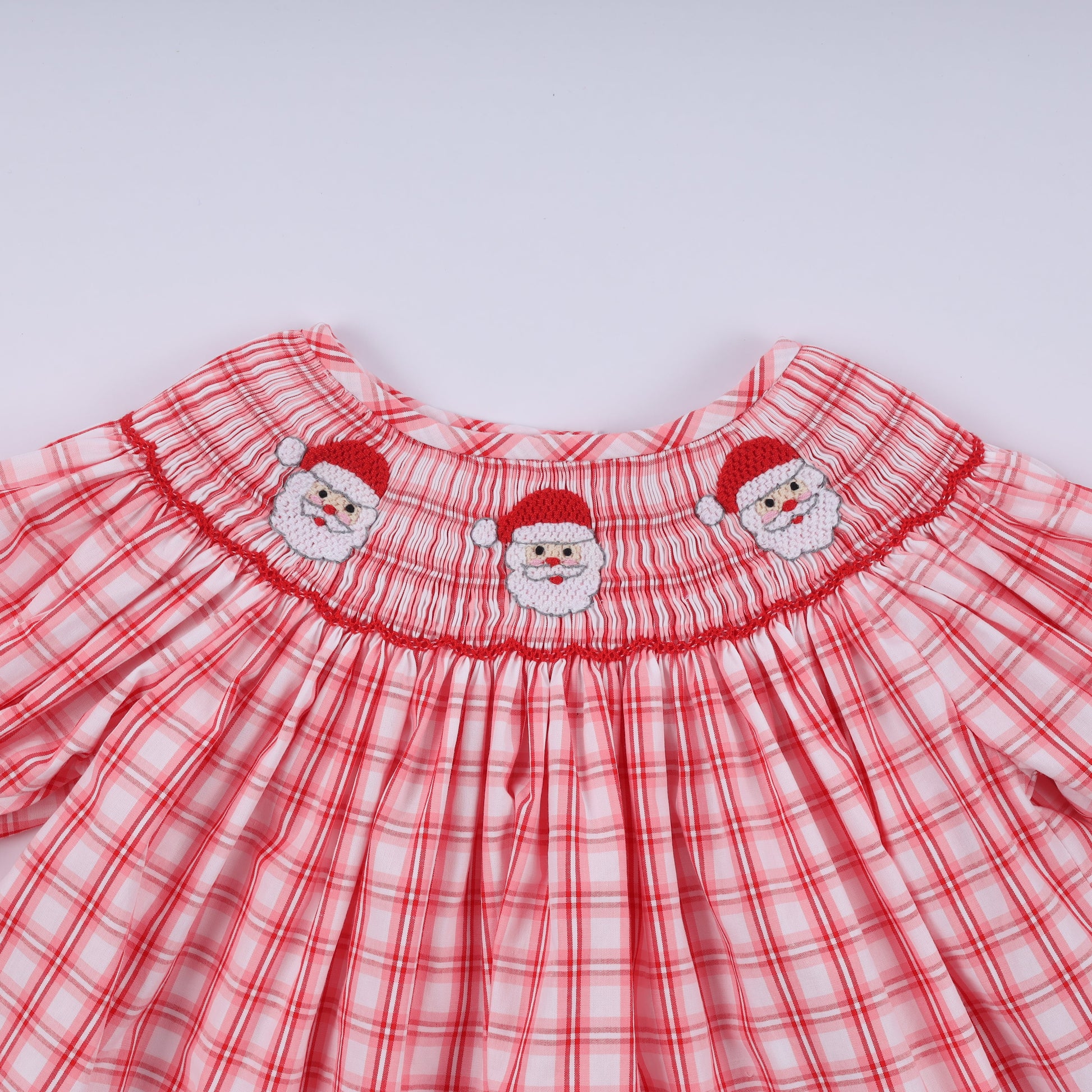 Deck the halls in festive style with this charming Red Christmas Santa Claus Hand Smocked Plaid Ruffle Pants Set! Featuring adorable hand-smocked details and a cheerful plaid pattern, this two-piece ensemble brings holiday magic to any little one's wardrobe. The ruffled pants add a whimsical touch perfect for family photos, holiday parties, or cozy winter days. Crafted with care and bursting with seasonal spirit, it's the ultimate way to spread Christmas cheer from head to toe.